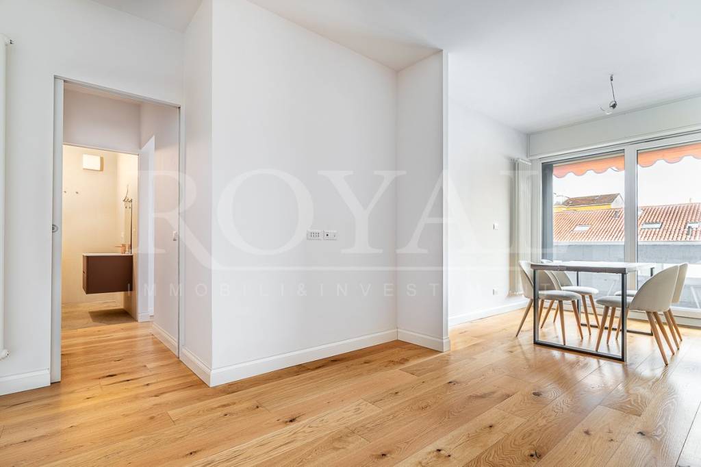 MONZA - SAN CARLO/FS: massimo 2/3 persone - T. indeterminato/Redditi documentabili - non sono ammessi animali In condominio signorile del 1987, ROYAL IMMOBILI & INVESTIMENTI propone in locazione un elegante trilocale finemente ristrutturato ed arredato. L'immobile è situato al terzo ed ultimo piano di un contesto condominiale signorile dotato di ascensore e giardino condominiale. Si compone di ingresso, soggiorno con cucina abitabile a vista con grande portafinestra con affaccio su balcone lungo. Tramite un corridoio, dove è stata ricavata una zona lavanderia con armadio a scomparsa, si accede alla camera matrimoniale con cabina armadio, cameretta e bagno con box doccia. L'immobile è stato completamente ristrutturato nel 2024, con finiture di alto standing. I serramenti sono i PVC con vetrocamera, tapparelle elettriche, zanzariere, impianto di aria condizionata, cronotermostato, videocitofono e predisposizione allarme. I pavimenti sono in parquet su tutta la superficie e gress porcellanato nel bagno. L'immobile viene consegnato ARREDATO o PARZIALMENTE ARREDATO. La cucina è Scavolini completa di tutti gli elettrodomestici e piano ad induzione. Completa la proprietà una cantina di pertinenza ed un box DOPPIO IN LARGHEZZA (28 MQ) con basculante elettrica in Largo Molinetto 2 al prezzo di €200 + €10 spese condominiali=€210/mese Contratto 4+4 cedolare secca Canone di locazione (privati) €1.300 + €100 di spese condominiali con riscaldamento autonomo + €210 box doppio comprensivo di spese Contratto a società Canone €2.000 + €100 di spese condominiali con riscaldamento autonomo + €210 box doppio comprensivo di spese SOLO REFERENZIATI - LIBERO SUBITO