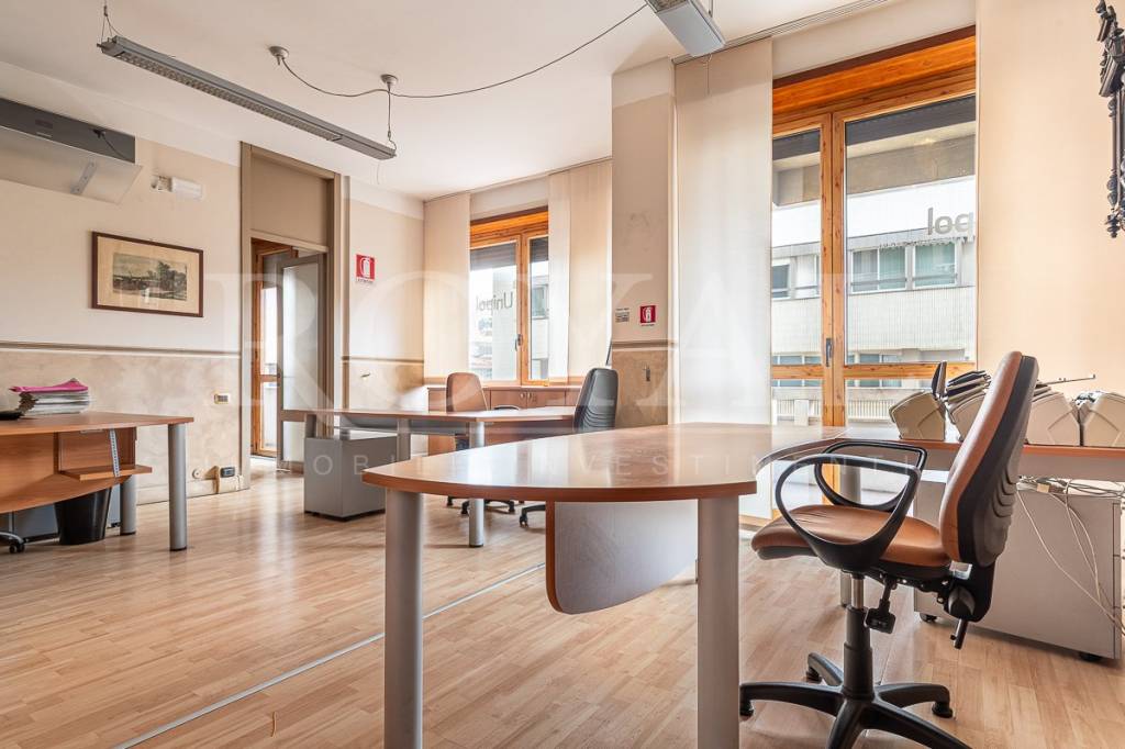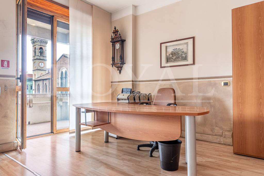 MONZA - SAN CARLO: in uno stabile signorile in PIAZZA DIAZ 1, ROYAL IMMOBILI & INVESTIMENTI propone un elegante immobile uso ufficio di 146 mq trasformabile in un QUADRILOCALE con doppi servizi. L'immobile è inserito al primo piano di un contesto condominiale degli anni '70 dotato di portineria full time e doppio ascensore. Con una ristrutturazione si può ottenere un immobile con doppio ingresso, grande cucina abitabile con balcone, salone con terrazzino, tre camere da letto (di cui 2 matrimoniali) e doppi servizi entrambi finestrati. Internamente al momento presenta pavimenti in legno posato su marmo, serramenti PVC - doppio vetri, impianto di aria condizionata, tapparelle elettriche e porta blindata. Completa la proprietà una cantina di pertinenza. Rappresenta la soluzione ideale per chi cerca un immobile di ampia metratura ed ampi spazi, molto luminoso con tripla esposizione, ampiamente personalizzabile ed in un quartiere privilegiato per la vicinanza alla stazione FS ed al centro storico. LIBERO SUBITO.