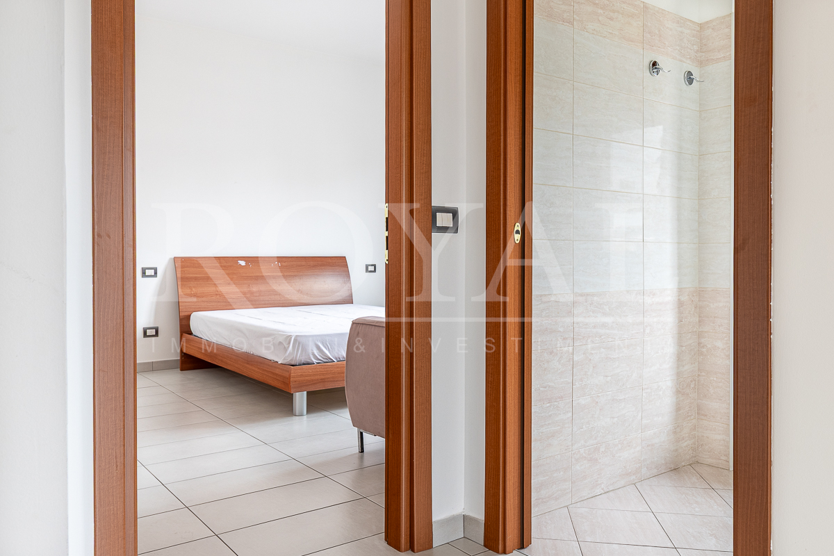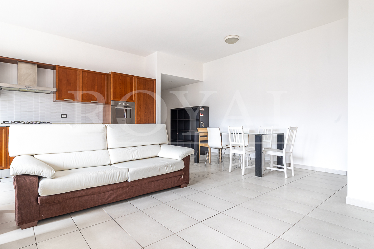 Si compone di ingresso, soggiorno con cucina a vista e balcone, bagno finestrato con doccia, 2° bagno/lavanderia.