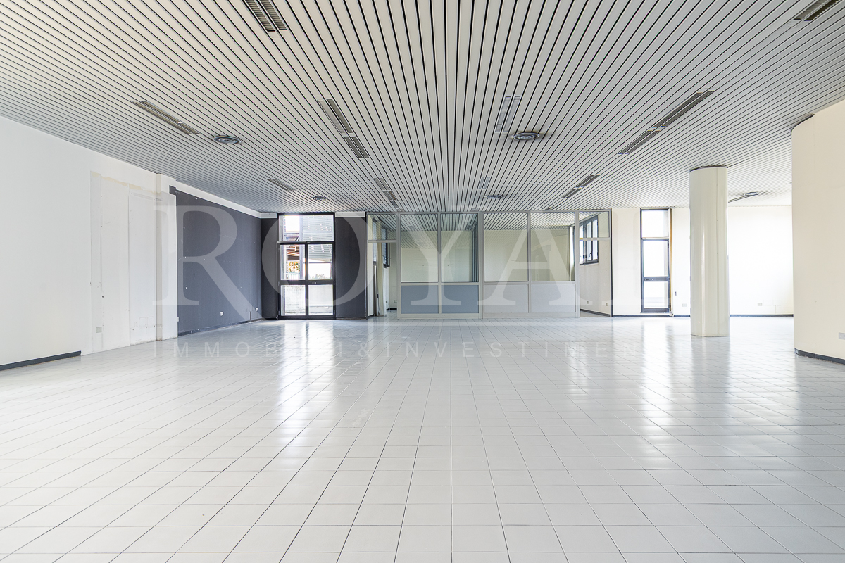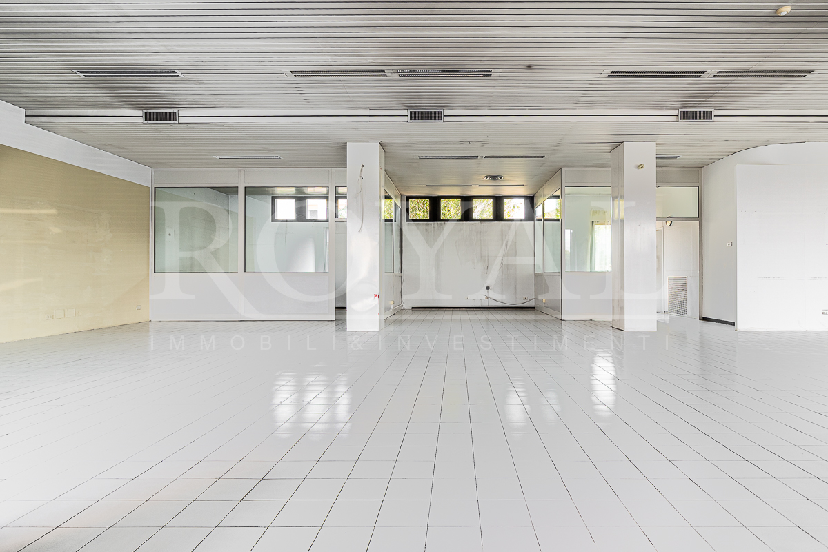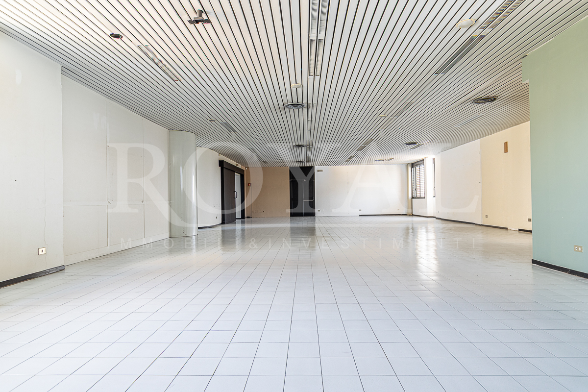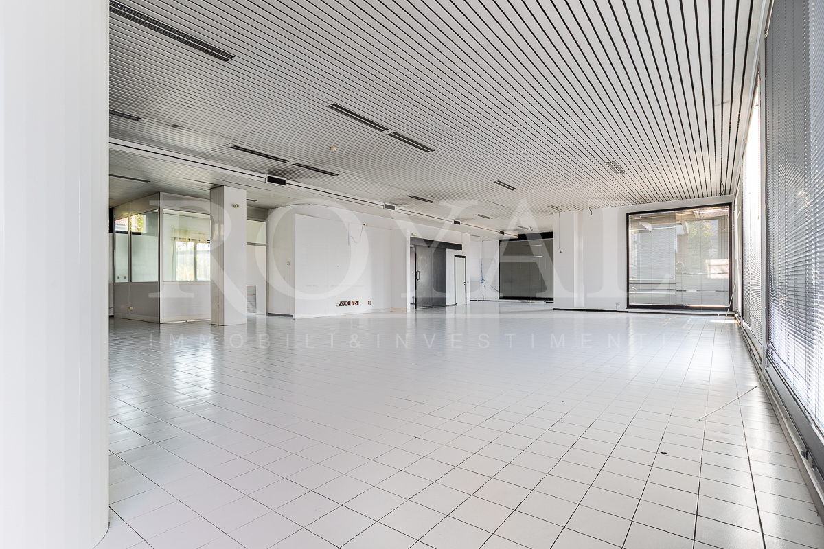 PIANO TERRA: open space di 365 mq con 8 vetrine (di cui 6 fronte Valassina), antibagno e bagno di servizio. Altezza interna 3,80 mt.