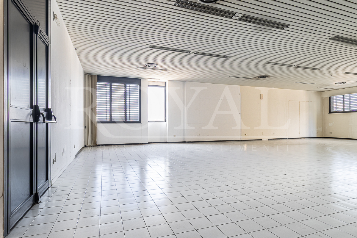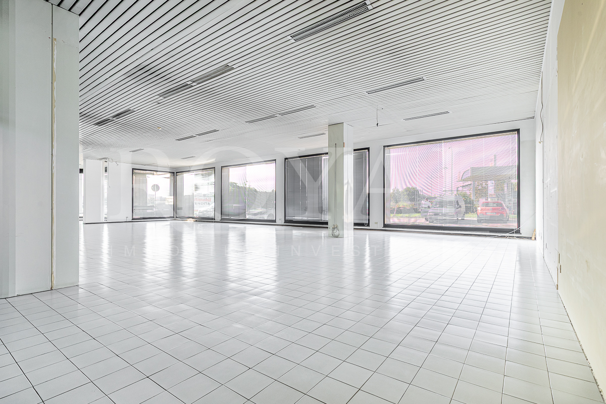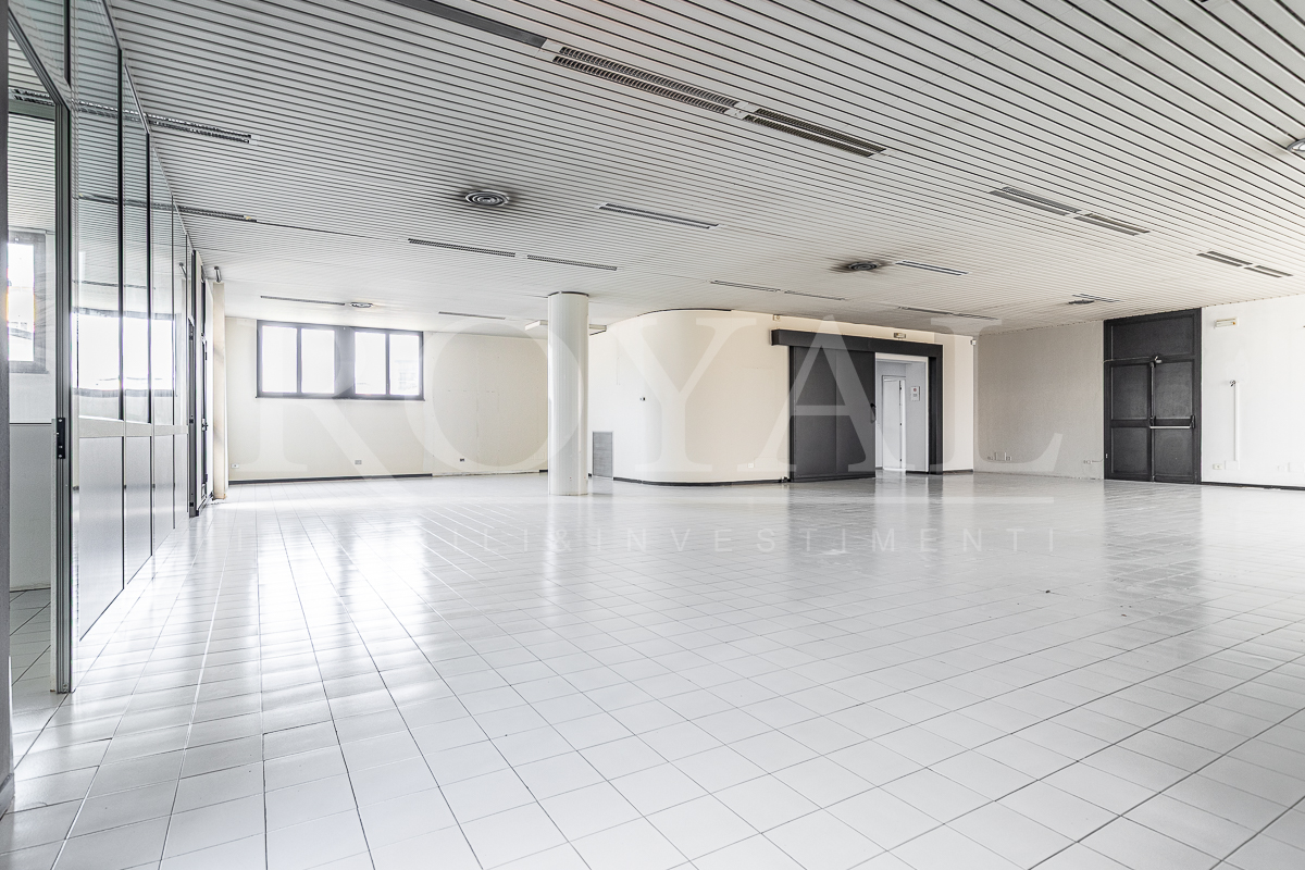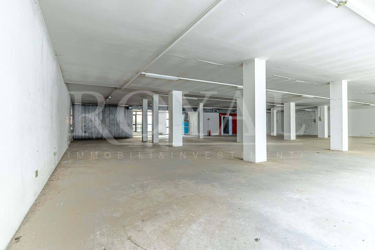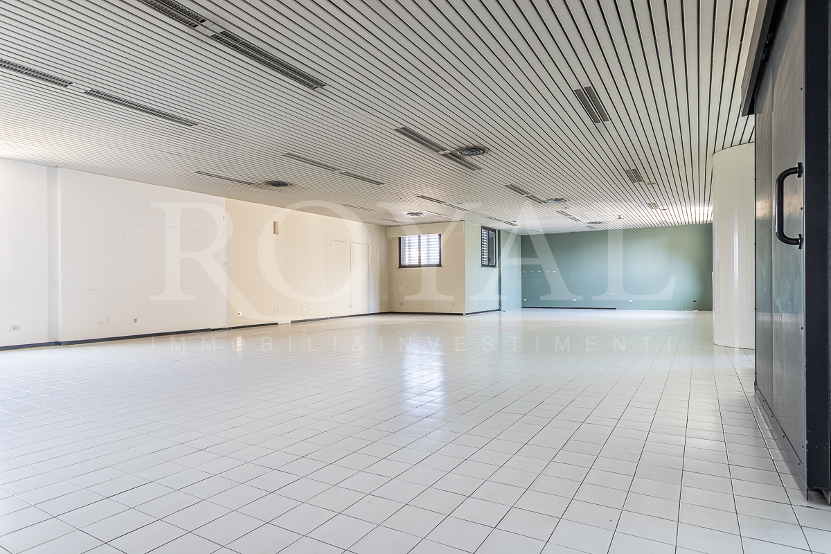 PIANO TERRA: open space di 365 mq con 8 vetrine (di cui 6 fronte Valassina), antibagno e bagno di servizio. Altezza interna 3,80 mt.